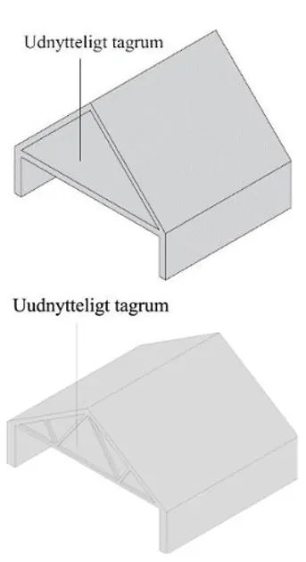 (B.1.1.3, stk. 5) En tagetage regnes for udnyttelig, når der uden væsentlige indgreb i tagkonstruktionen kan indrettes opholdsrum.